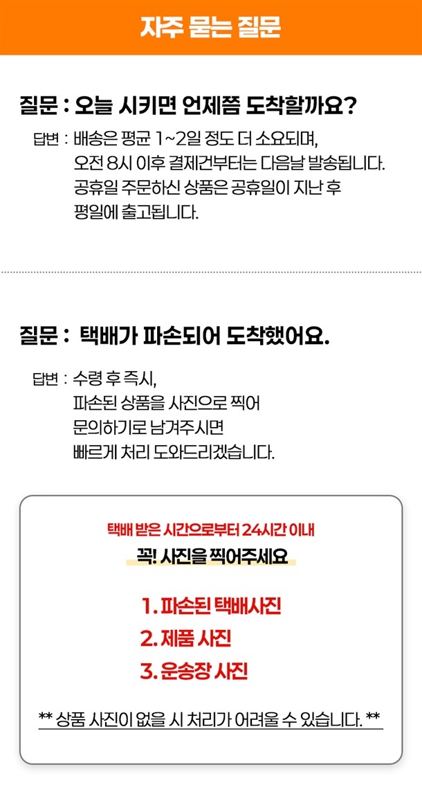 · 배송비 : 3,000원(6개 마다 기본배송비 반복 부과)