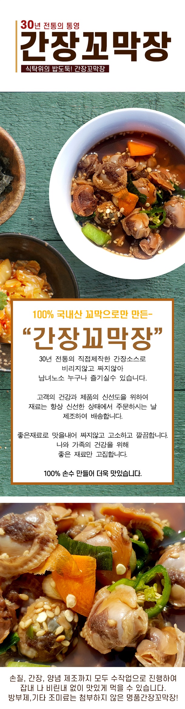 30년 전통의 간장소스로 짜지않은 간장 꼬막장