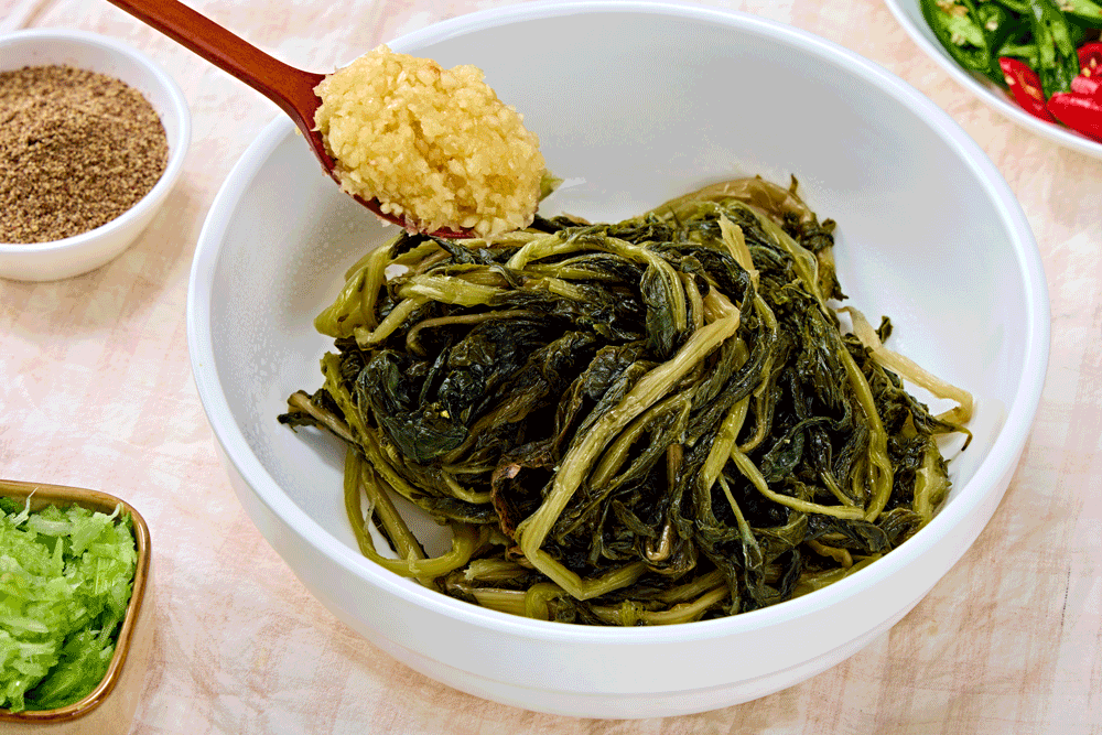 부드러운 잎과 아삭한 대의 매력적인 식감