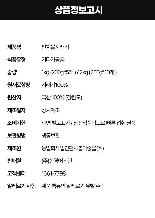 100% 국산 무청! 펀치볼시래기 1kg, 2kg