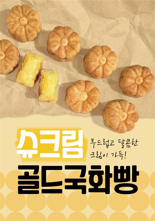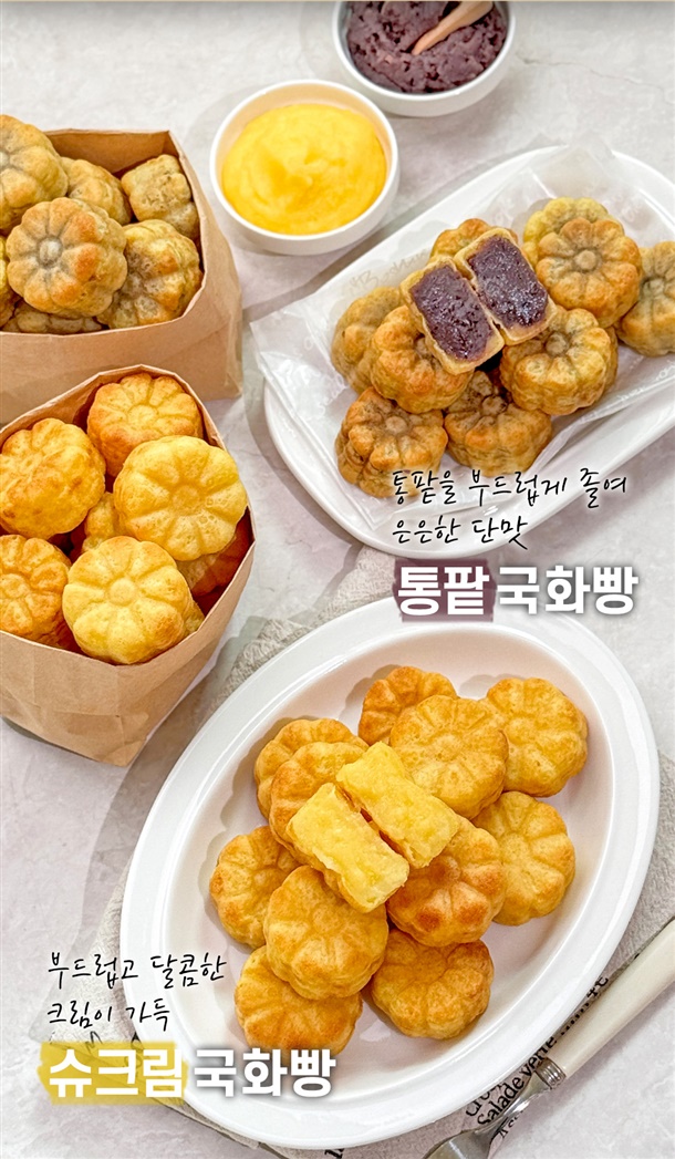 속이 꽉 찬 부드러운 팥, 슈크림 국화빵