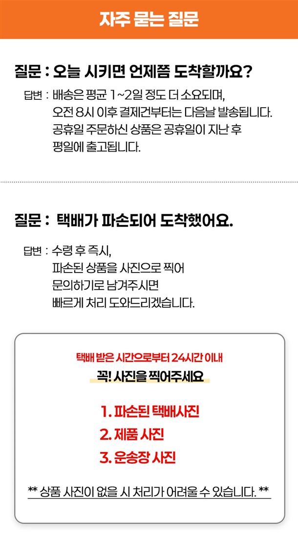 · 배송비 : 4,000원(1개 마다 기본배송비 반복 부과)