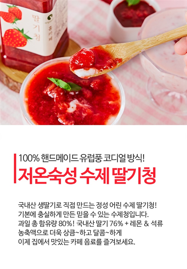 100% 핸드메이드! 고령에서 갓수확한 생 딸기로 만들었어요