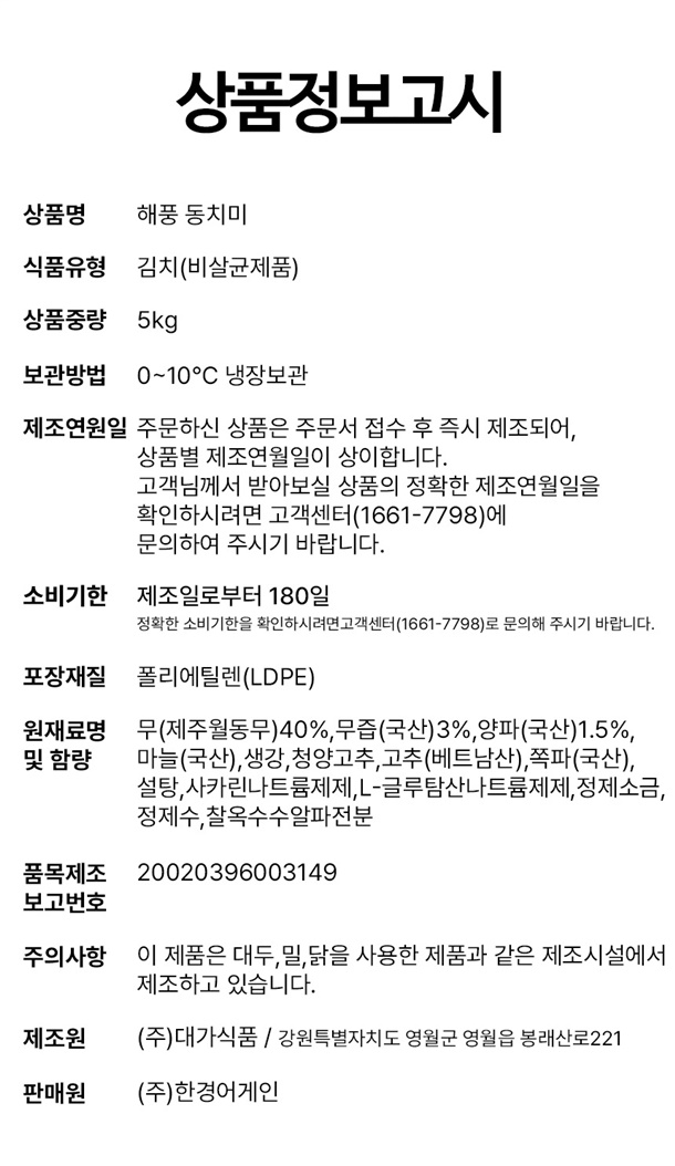해풍 동치미 5kg