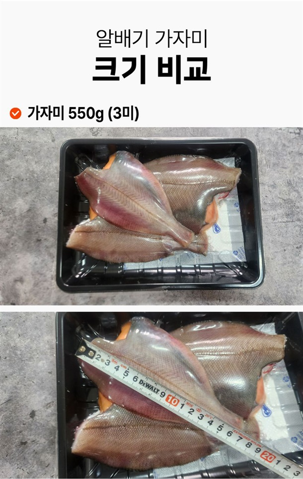 알이 꽉 찬 국내산 손질 알배기 가자미 중대 550g(2~3미)
