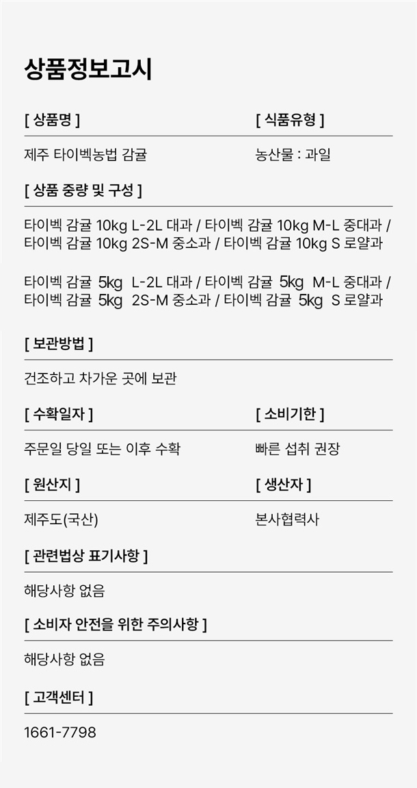 전국 최저가 도전!! 제주 타이벡 감귤 5kg 10kg