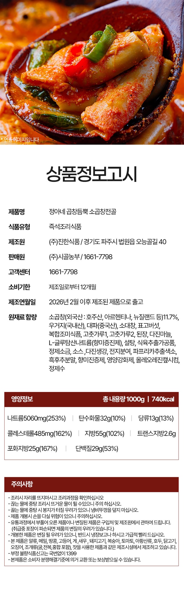 정아네 곱창듬뿍 소곱창전골 1kg 3팩 4팩 5팩