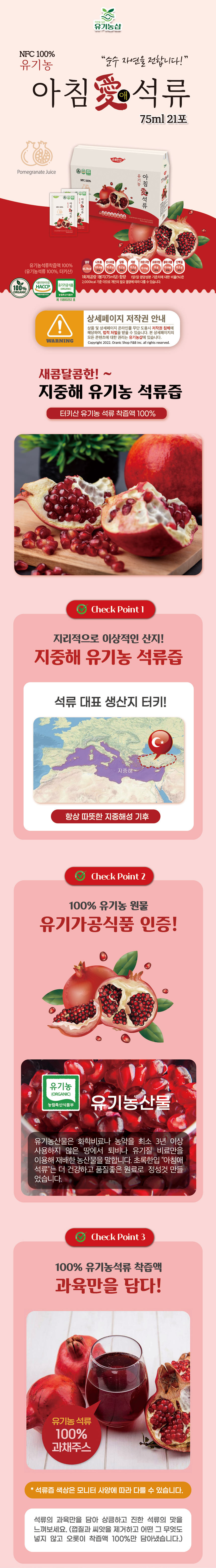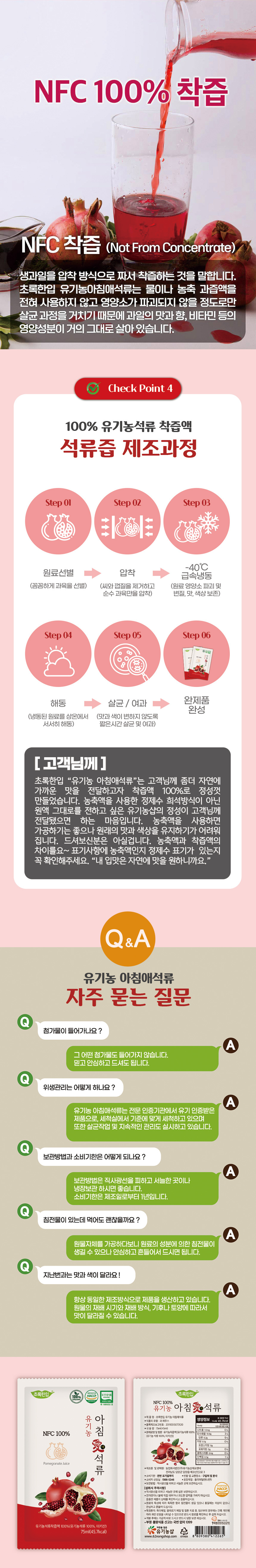 석류 착즙액 100% 새콤달콤한 유기농 아침애석류