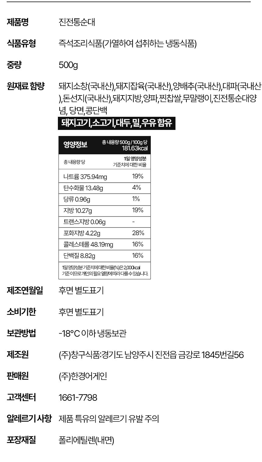 줄서서 먹던 그맛 그대로 담은 순대 500g 3종