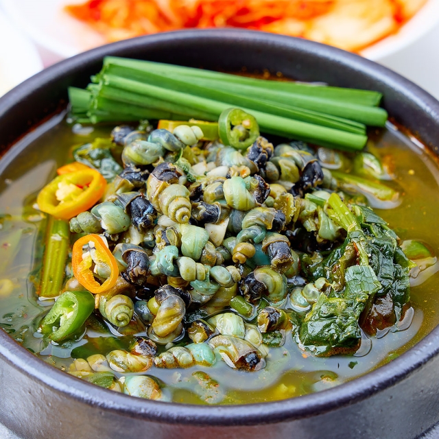 맑고 진한 국물과 담백하고 쫄깃한 다슬기! 아욱다슬기해장국