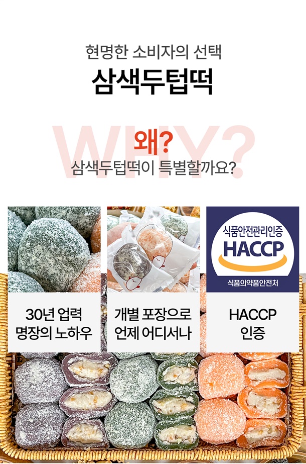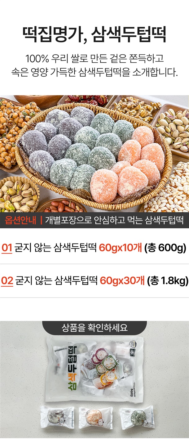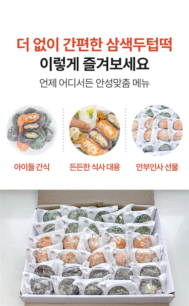 한입에 쏙! 개별포장으로 더욱 간편한 굳지 않는 삼색 두텁떡