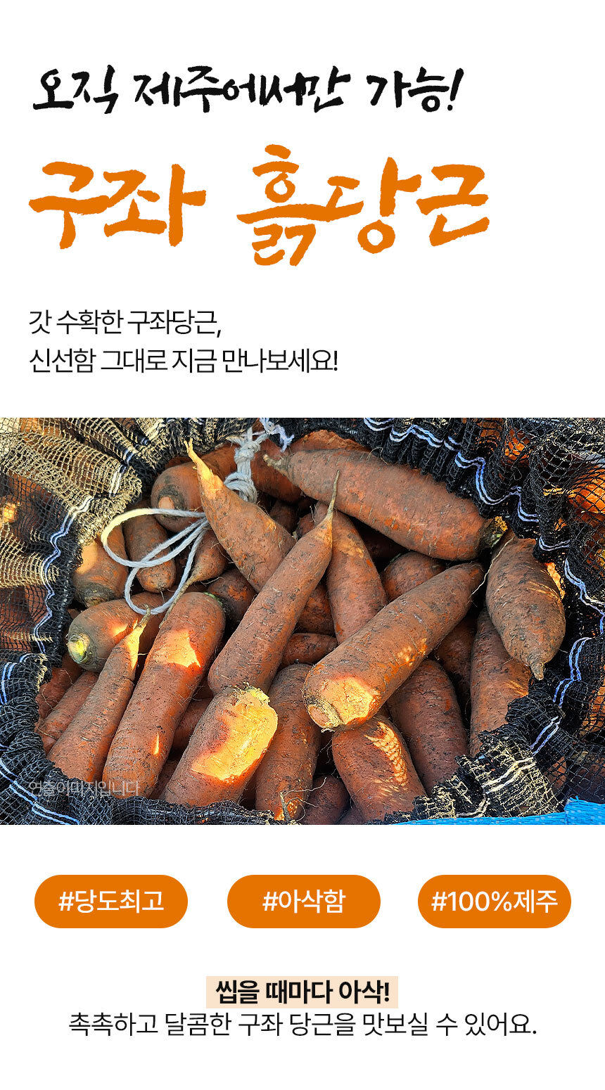 토양 좋은 제주에 자라 단단하고 달콤한 구좌 흙당근!