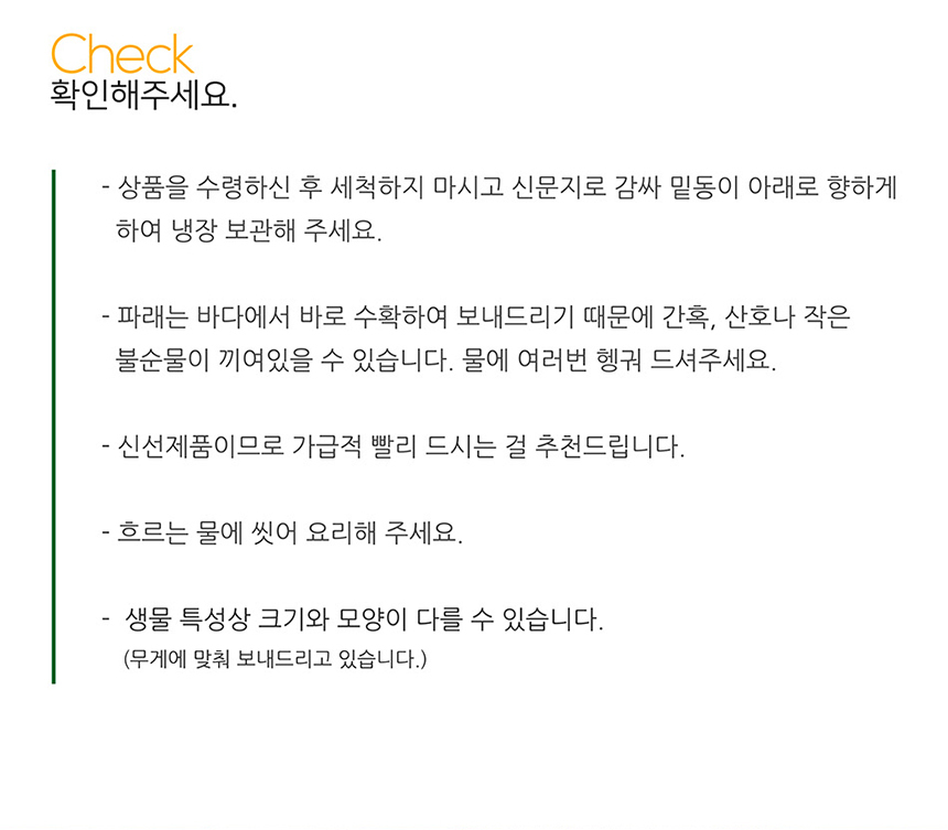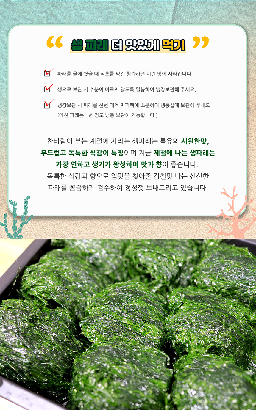 바다의 영양을 가득 품은 생물 파래 500g 1kg