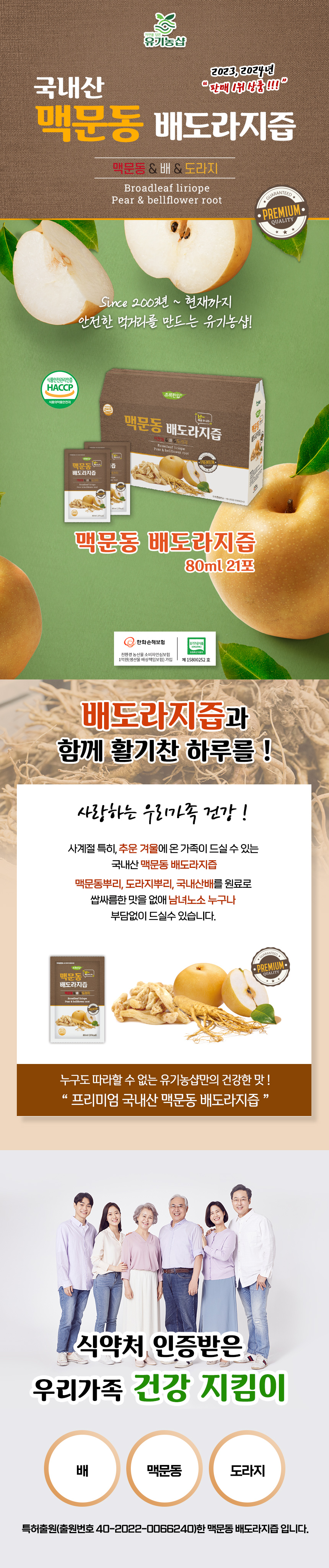 누구도 따라할 수 없는 유기농의 맛! 프리미엄 국내산 맥문동 배도라지즙