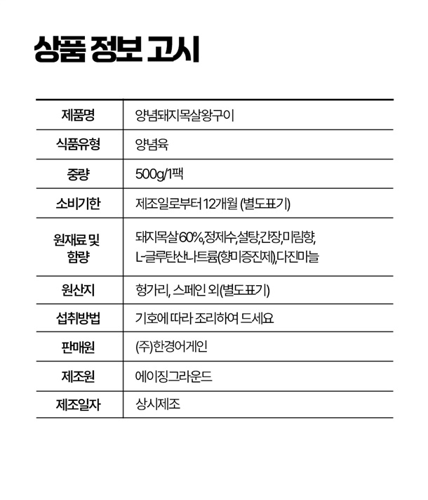 특제 양념소스로 만든 양념돼지목살 왕구이 500g