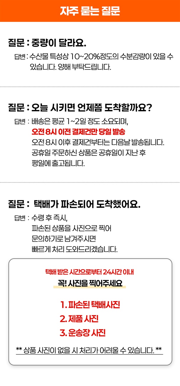 · 배송비 : 3,500원(6개 마다 기본배송비 반복 부과)