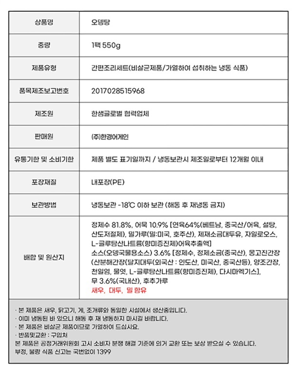 감칠맛 넘치는 대용량 수제 오뎅탕 550g