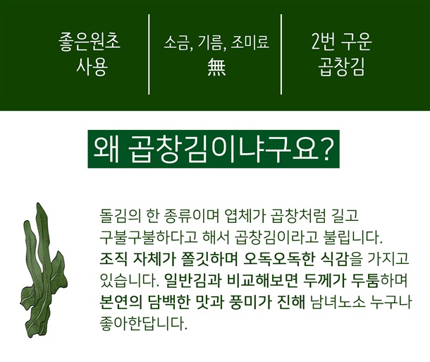 바다의 풍미를 한가득 담아 더 맛있는 구운곱창김
