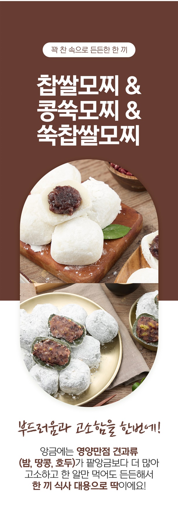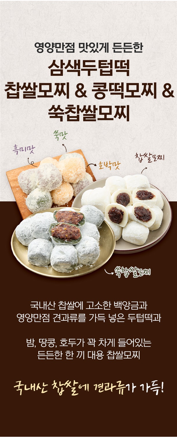 국내산 찹쌀에 견과류 가득! 든든한 한 끼 대용 찹쌀모찌