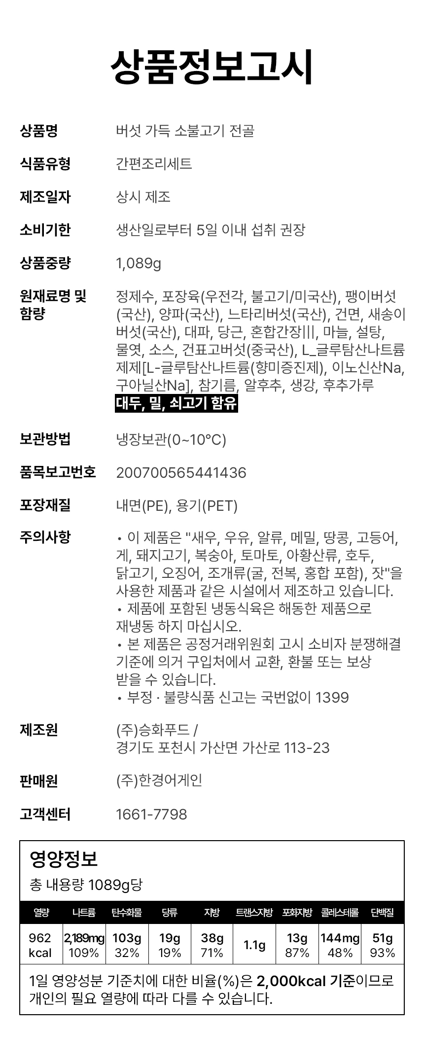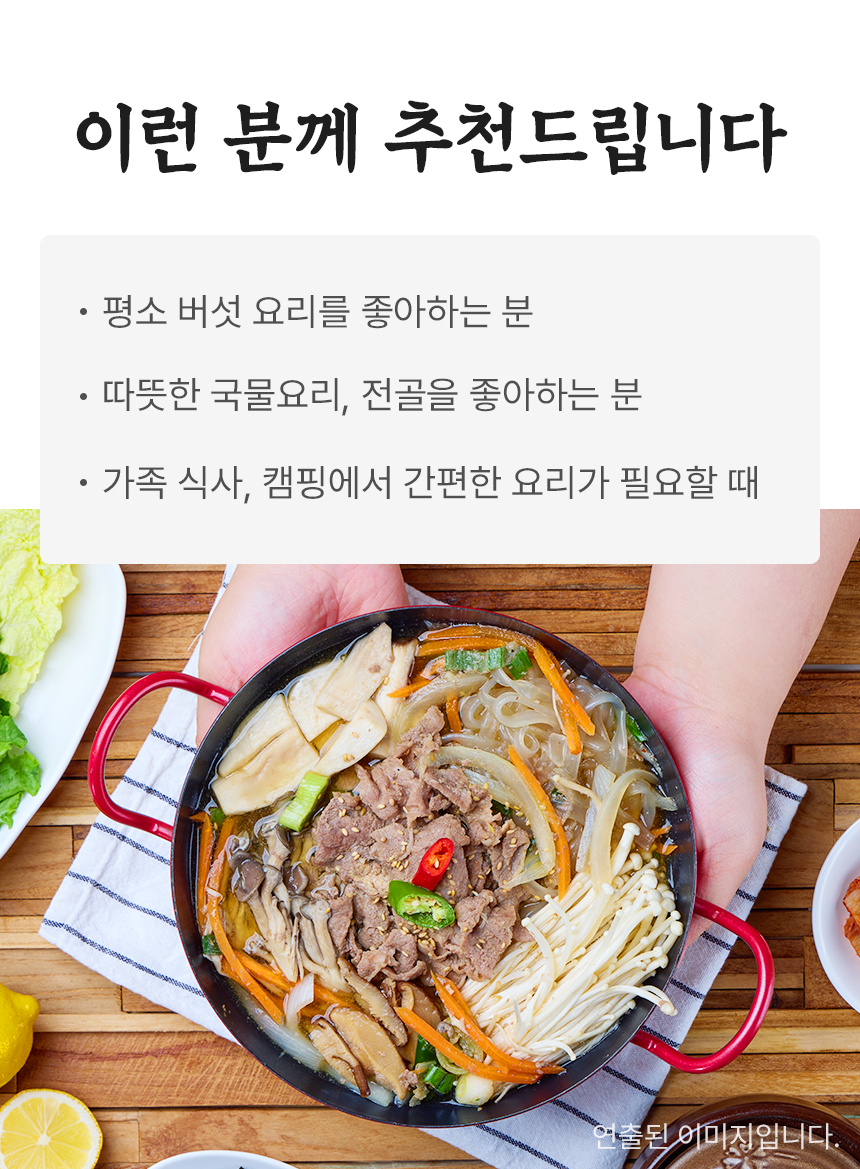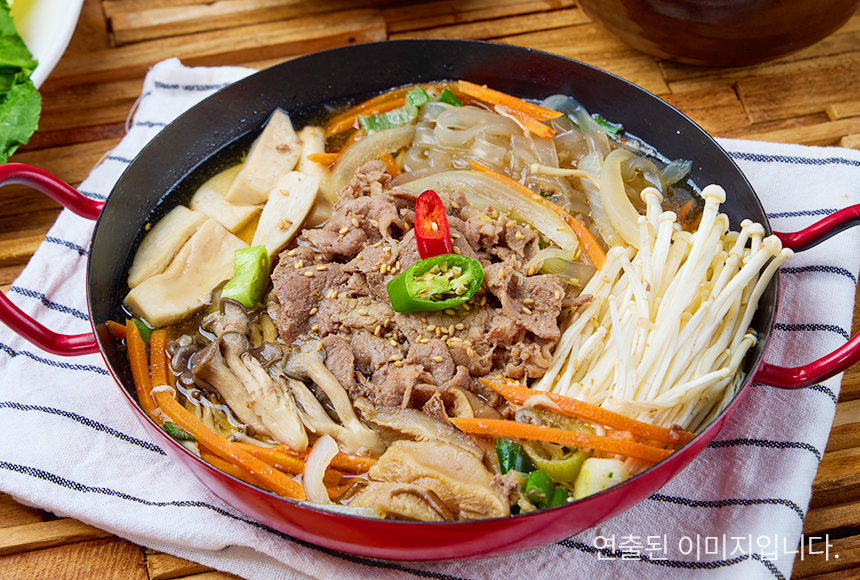 버섯의 풍미를 듬뿍 담아낸 소불고기전골 1kg