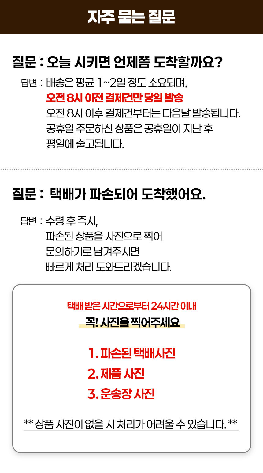 · 배송비 : 4,000원(1개 마다 기본배송비 반복 부과)
