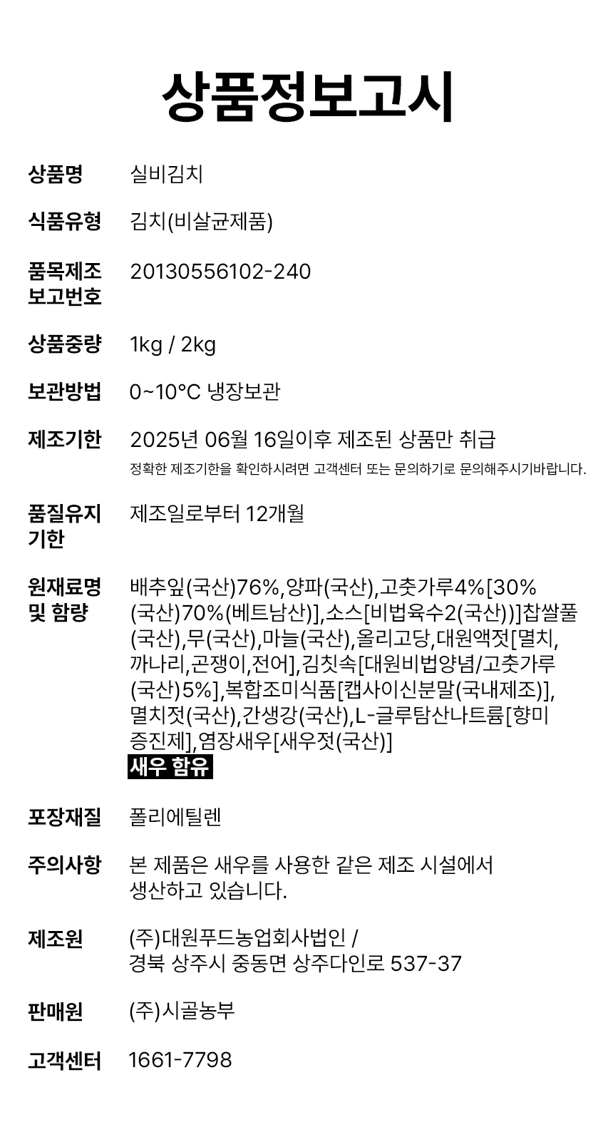 국내산 재료 홍고추청으로 만들어 더욱 화끈하게 매콤한 실비김치!