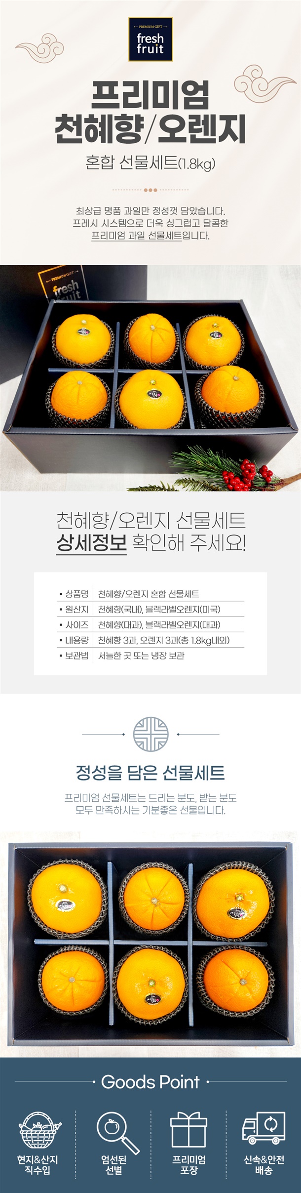 프리미엄 천혜향/오렌지 혼합세트 약 1.8kg