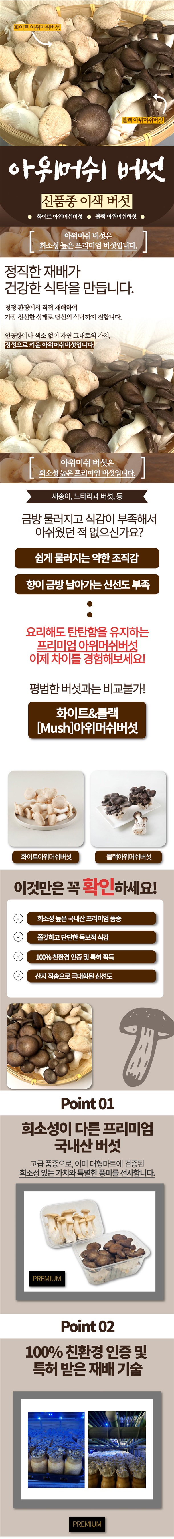 정직한 재배가 건강한 식탁을 만듭니다 화이트&블랙아위머쉬 버섯