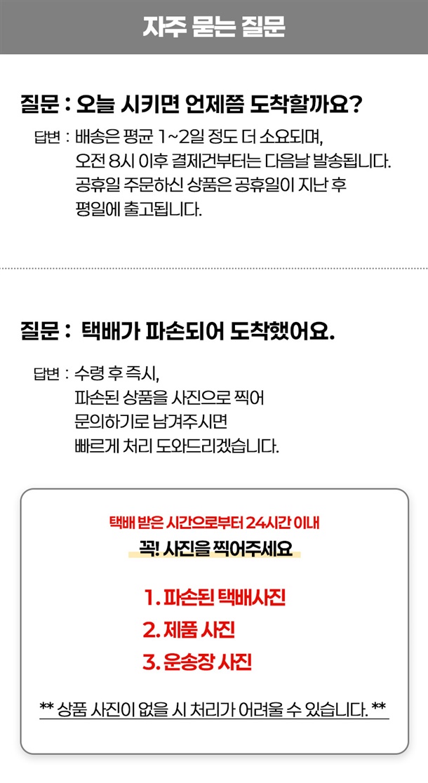 · 배송비 : 4,000원(6개 마다 기본배송비 반복 부과)