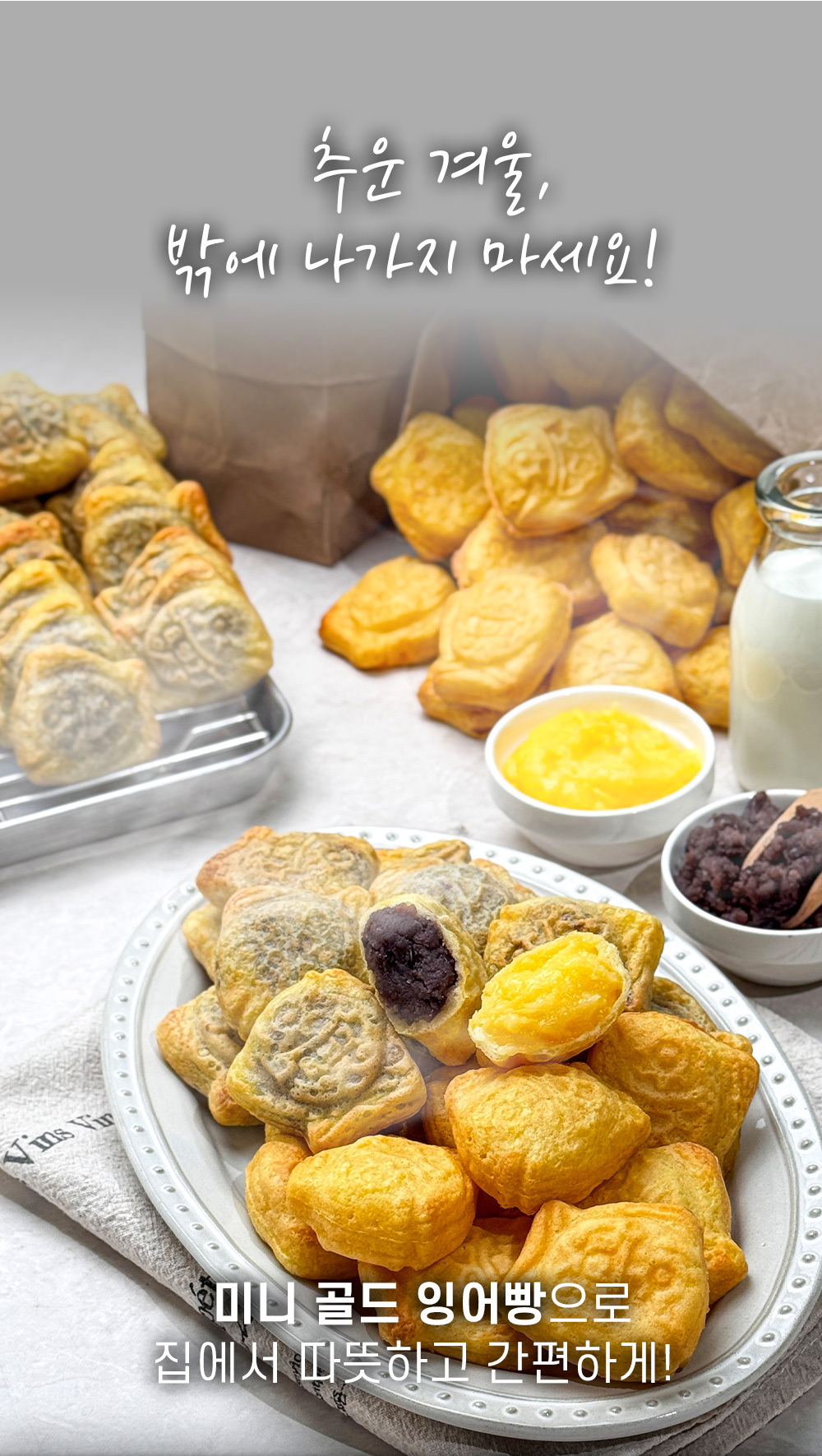 추운겨울,집에서 따듯하고 간편하게! 통팥 슈크림 미니골드 잉어빵 2종
