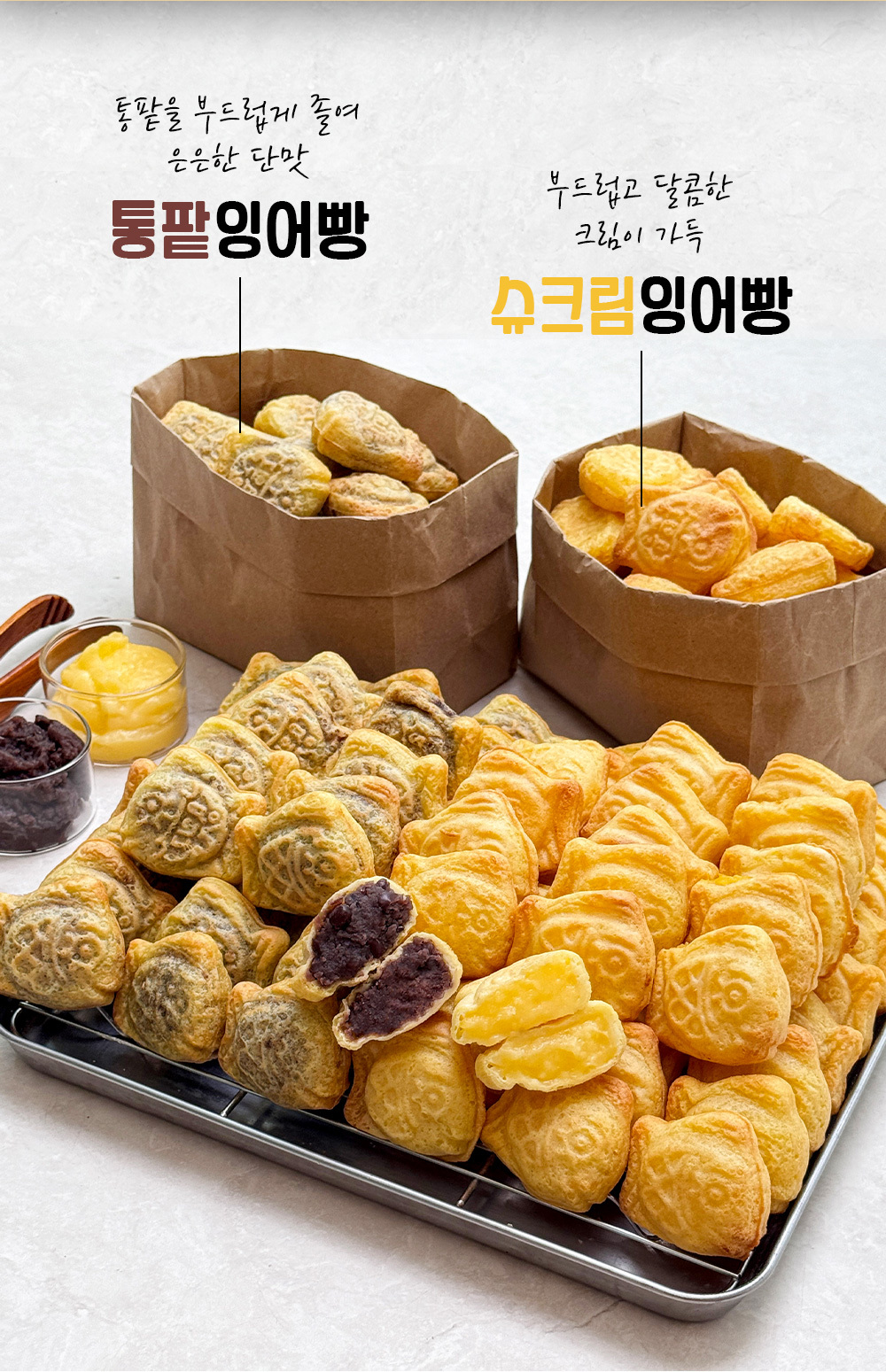 한입에 쏙! 통팥 슈크림 미니골드 잉어빵 2종