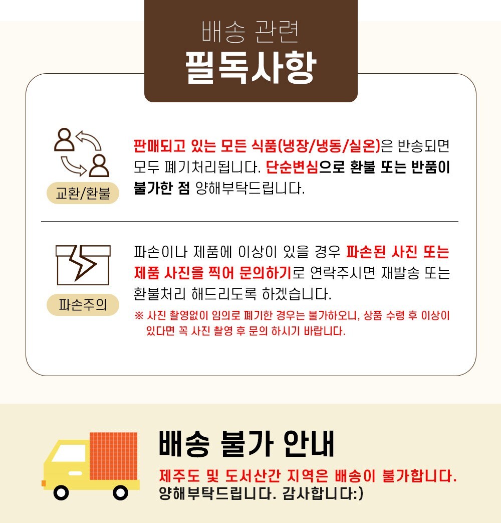 · 배송비 : 3,500원(20개 마다 기본배송비 반복 부과)
