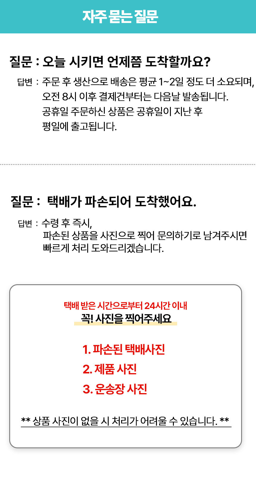 · 배송비 : 4,000원(1개 마다 기본배송비 반복 부과)