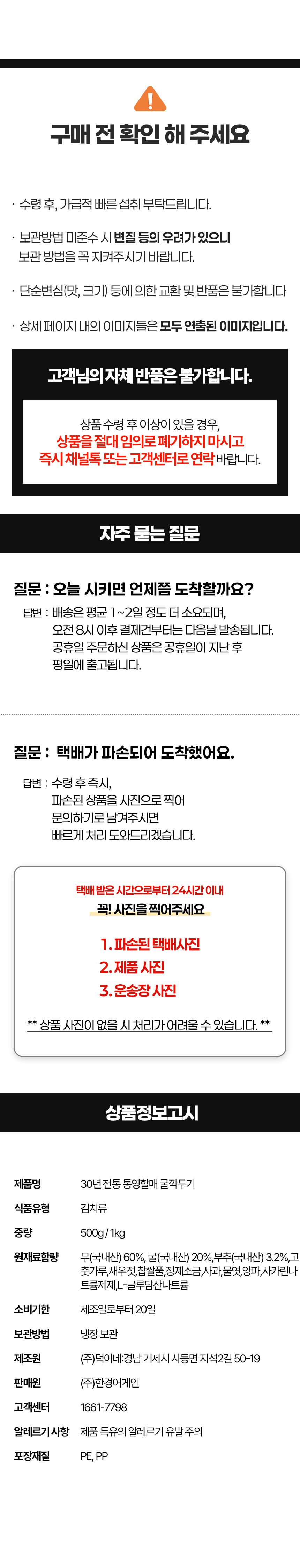 아삭한 무와 바다향 가득한 굴의 맛이 일품인 굴깍두기 500g 1kg