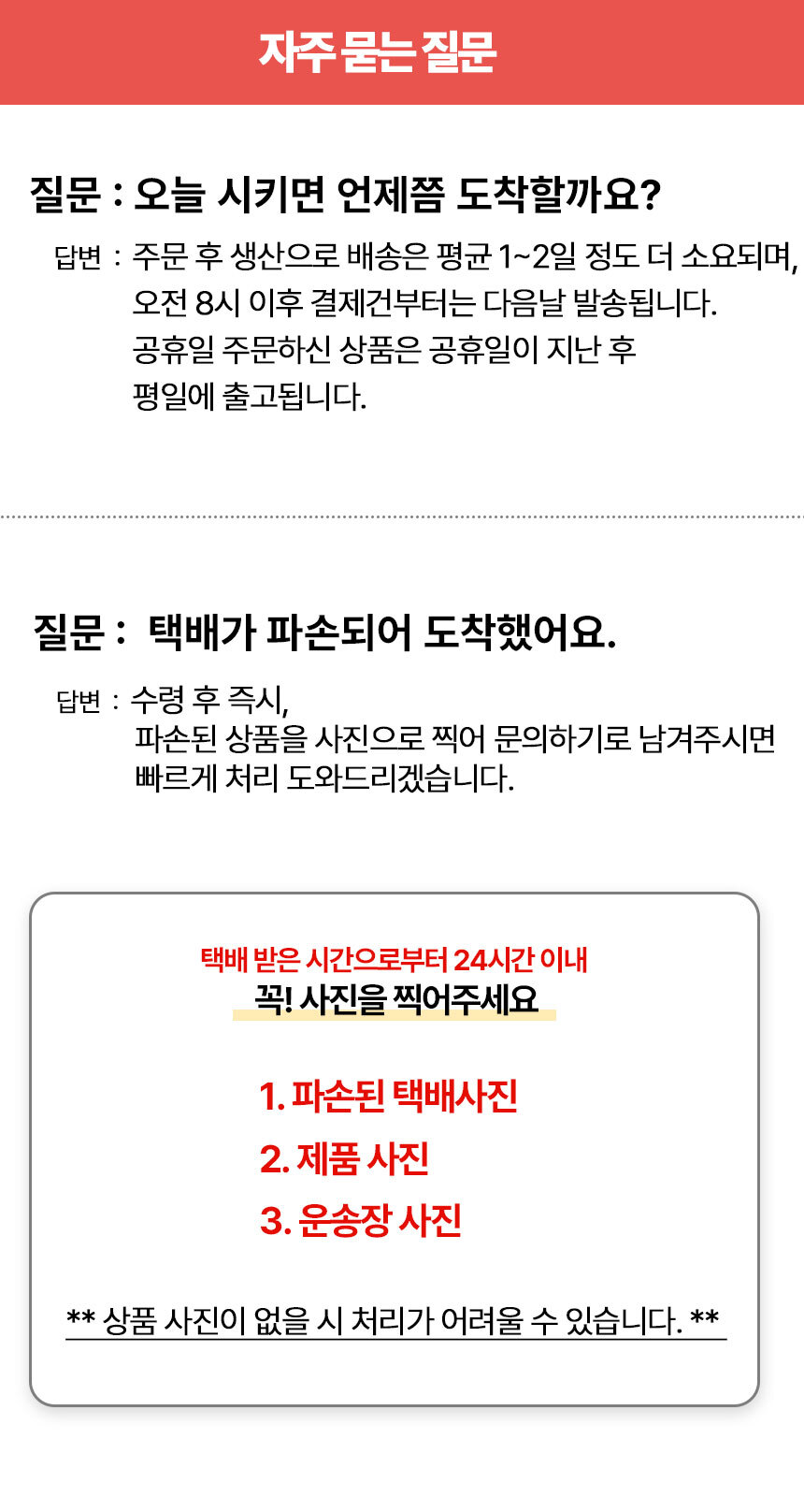 · 배송비 : 4,000원(15개 마다 기본배송비 반복 부과)