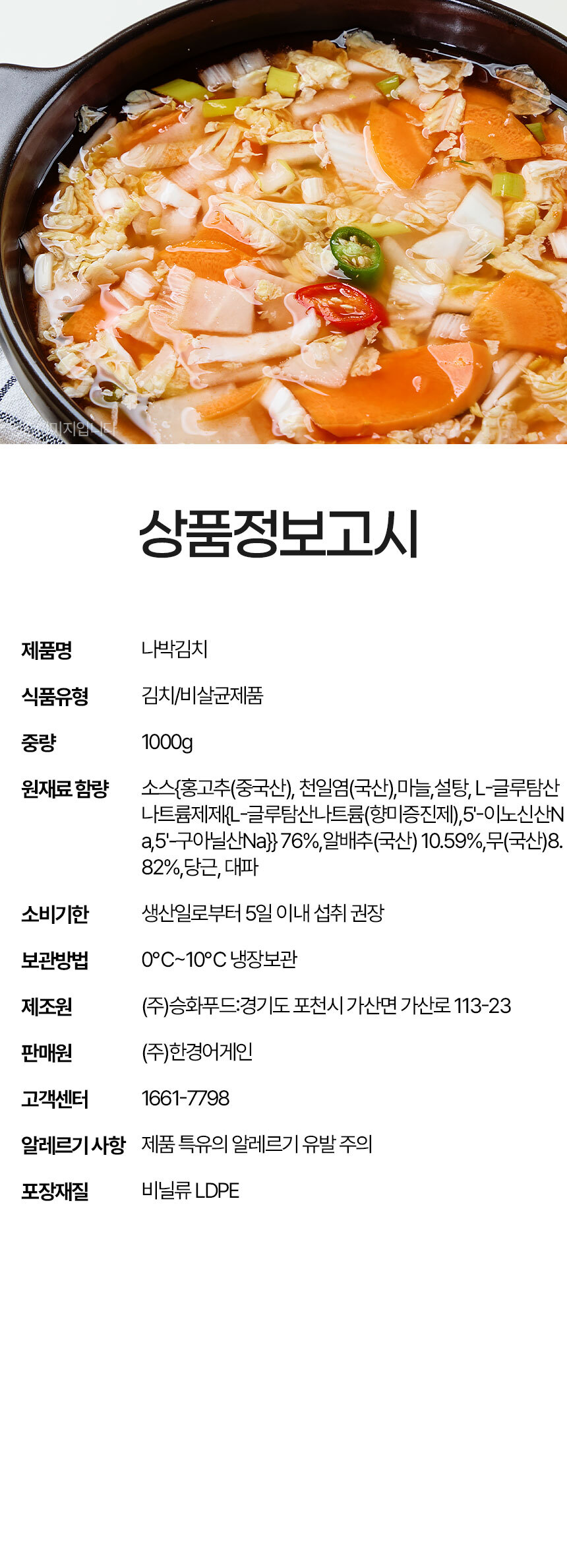 50년 전통의 손맛으로 완성 된 나박김치 1kg