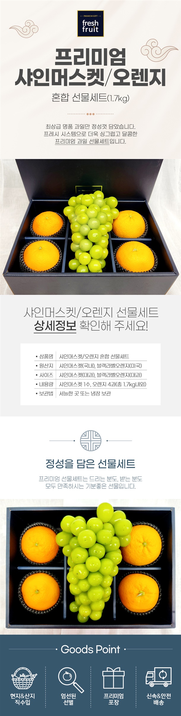 프리미엄 샤인머스켓/오렌지 혼합세트 약 1.7kg