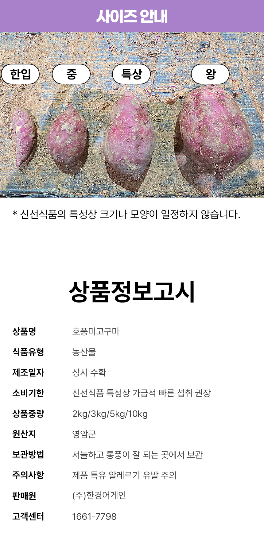 촉촉하고 담백한 신품종 호풍미 고구마 2kg 외
