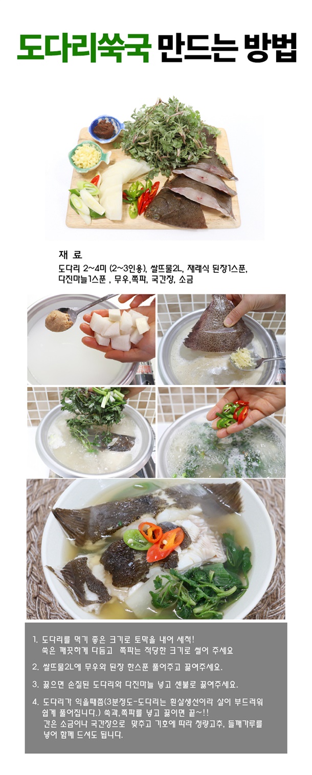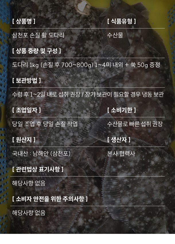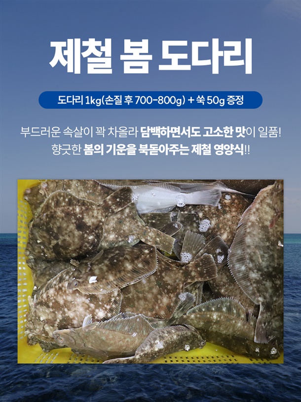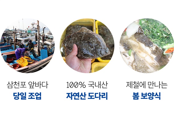 삼천포 손질 제철 활 봄 도다리 1kg (손질 후 700~800g) + 쑥 50g 증정