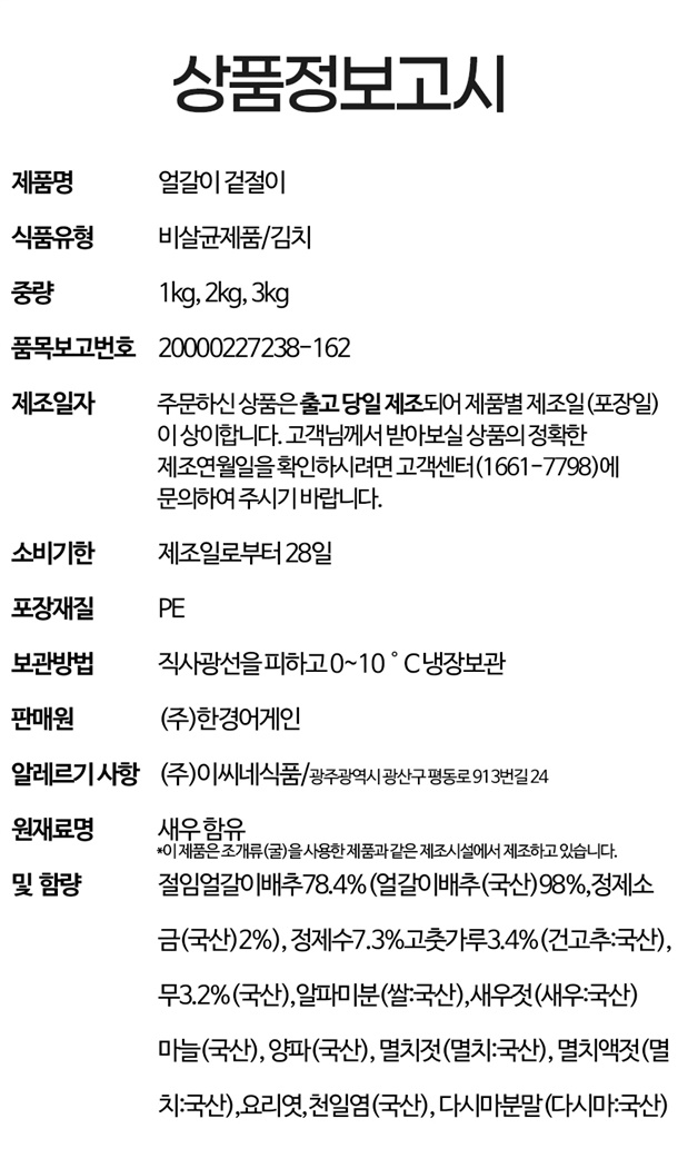 시원하고 칼칼한 전라도 얼갈이겉절이 1kg