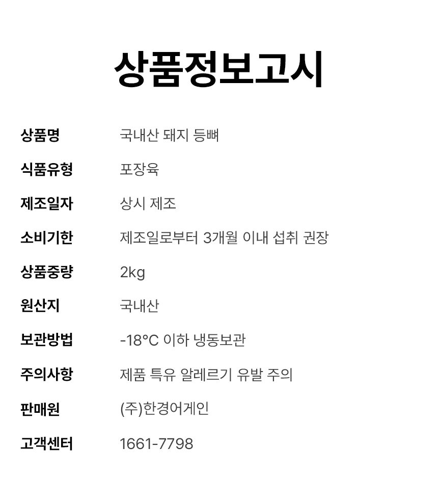 감칠맛 진한 국내산 돼지 등뼈 2kg
