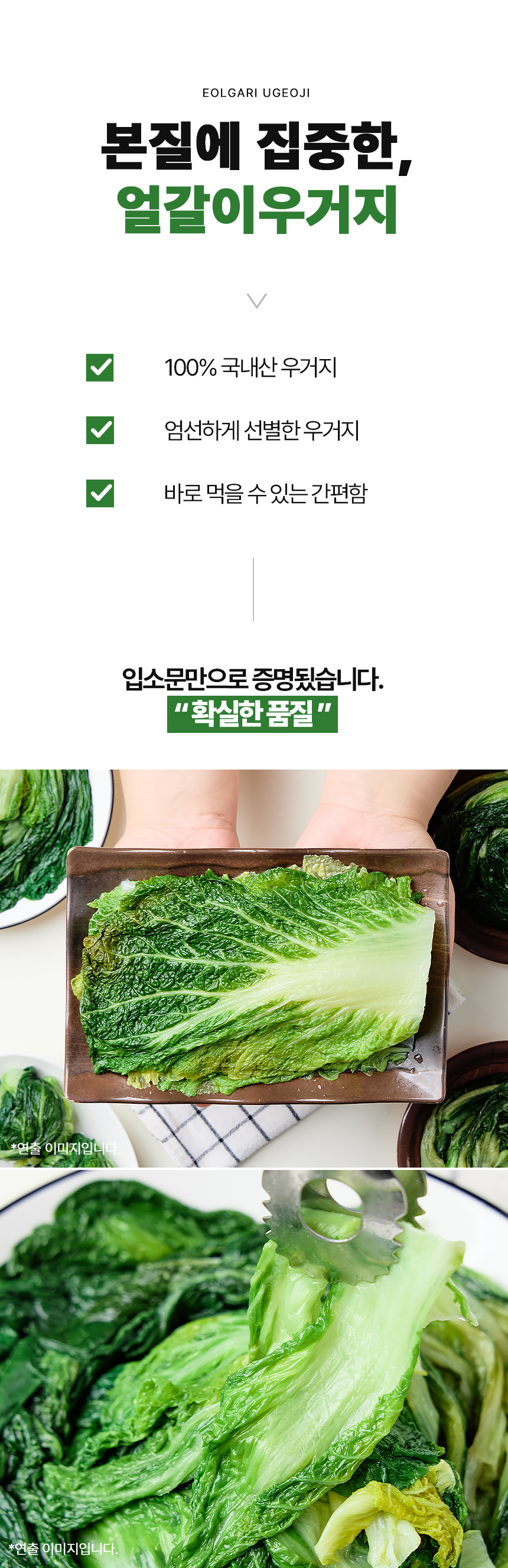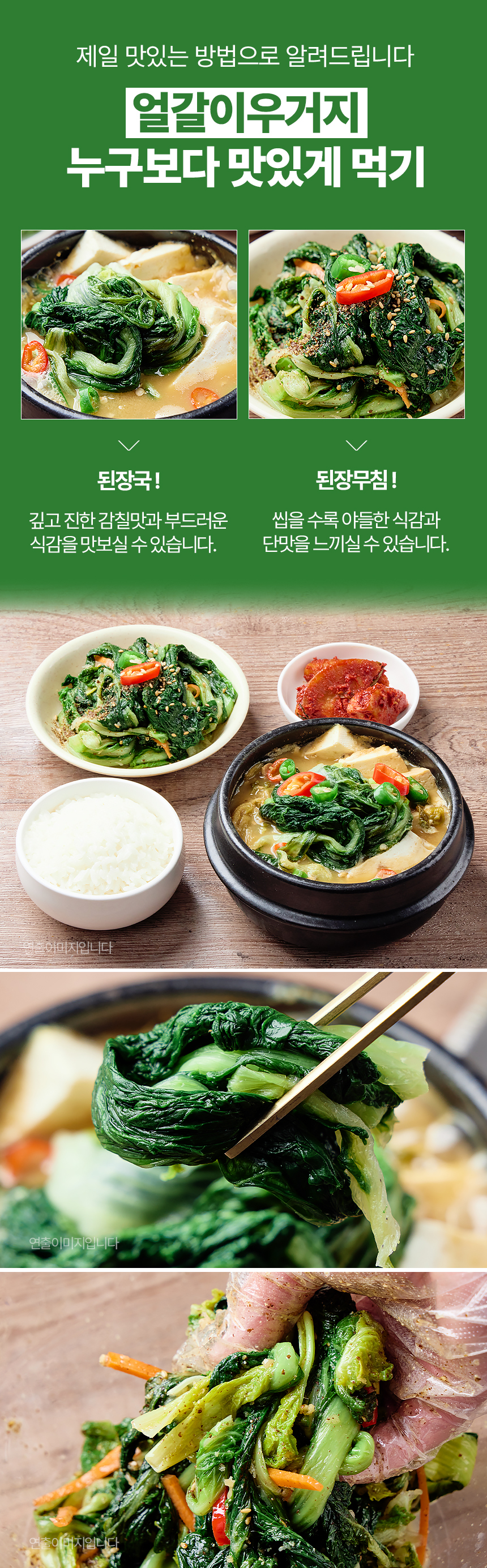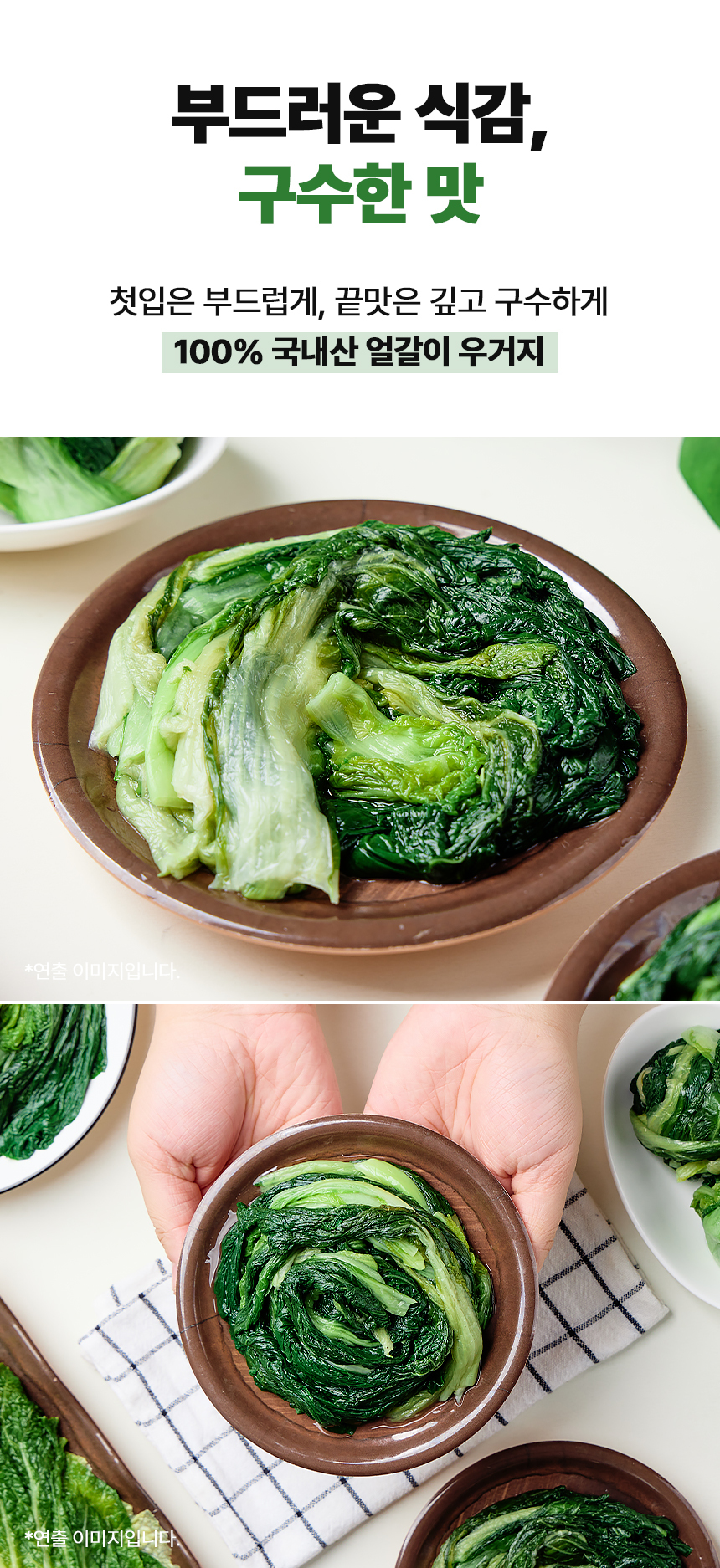 첫입은 부드럽게, 끝맛은 깊고 구수하게 100% 국내산 얼갈이 우거지