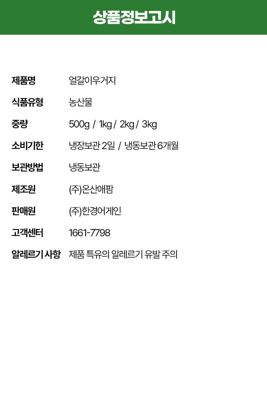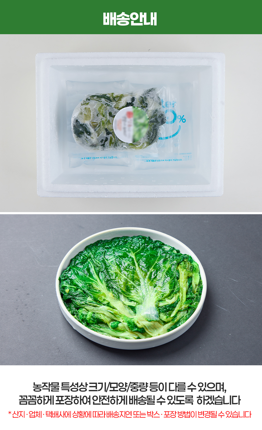 100% 국내산 얼갈이 우거지