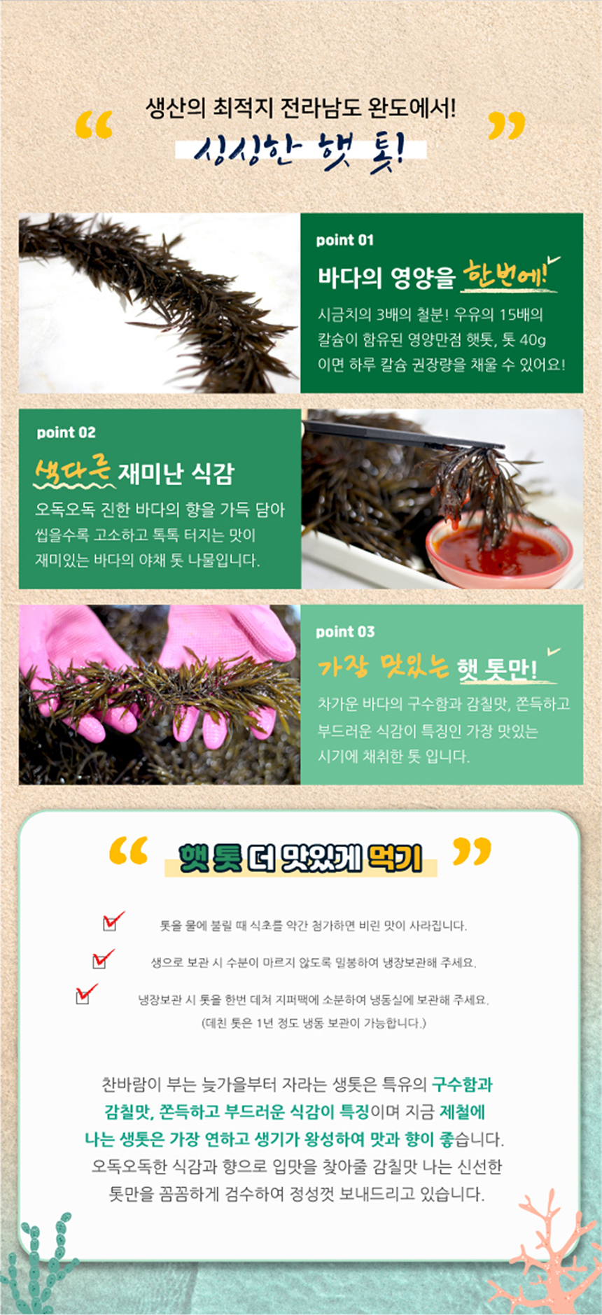 청정지역에서 채취한 맛있고 건강한 완도 생 톳