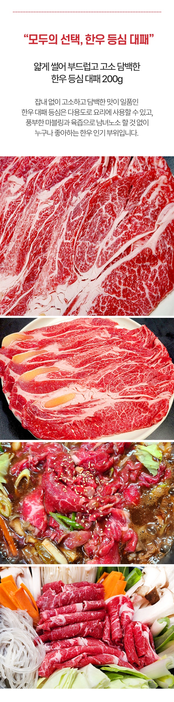 미친 마블링과 풍부한 육즙 한우 등심 대패 200g (불고기소스1 증정)