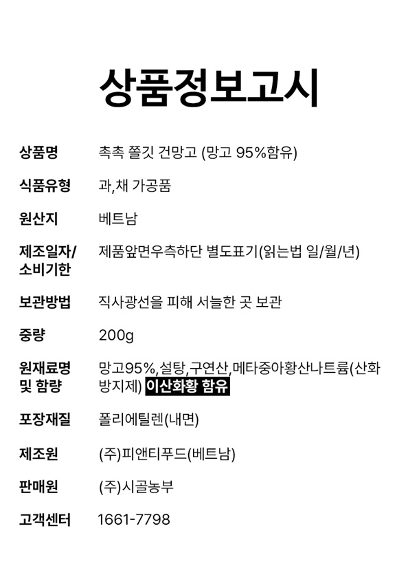 유통기한 임박) 촉촉 쫄~~깃 건망고 200g