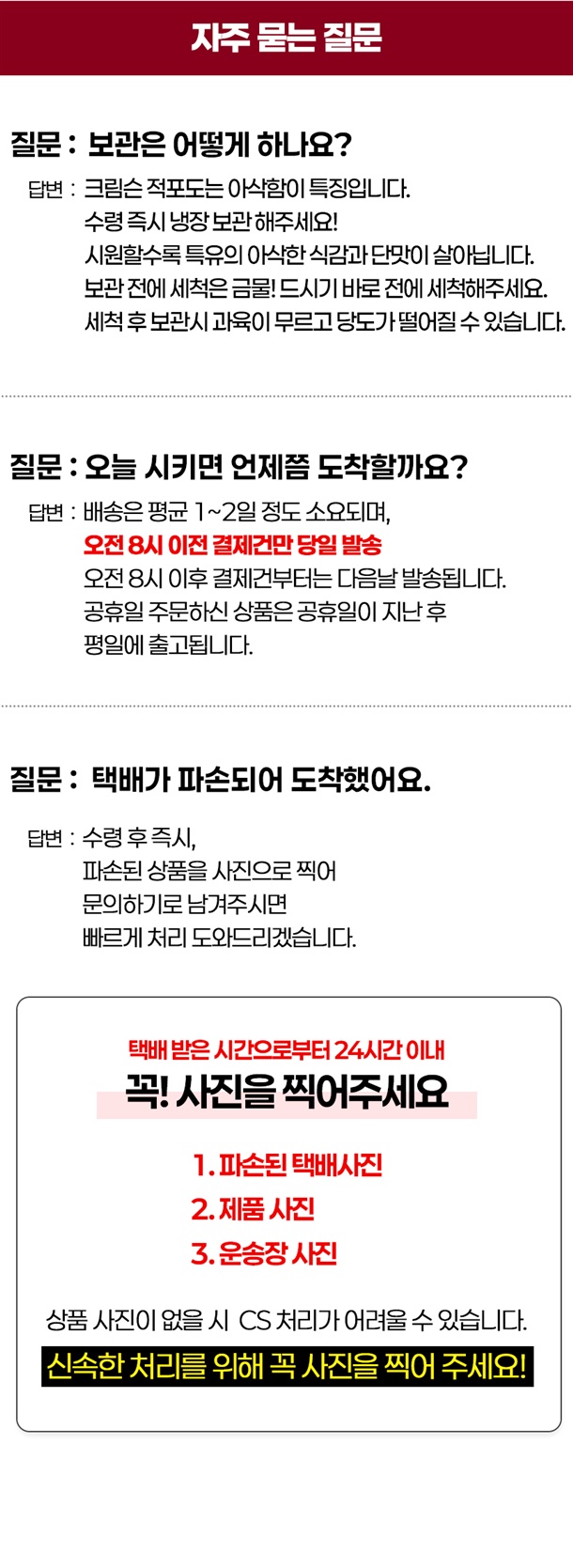 · 배송비 : 2,500원(1개 마다 기본배송비 반복 부과)