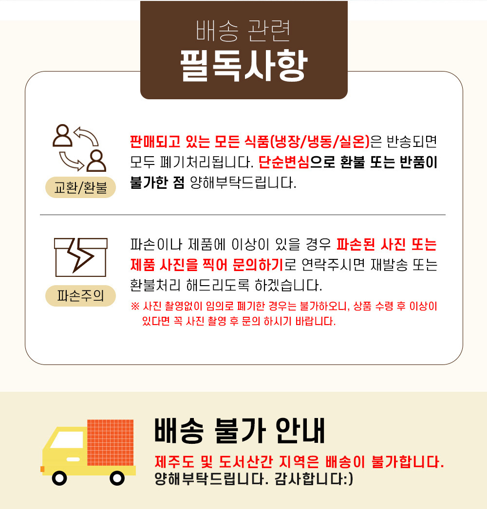 · 배송비 : 3,500원(3개 마다 기본배송비 반복 부과)