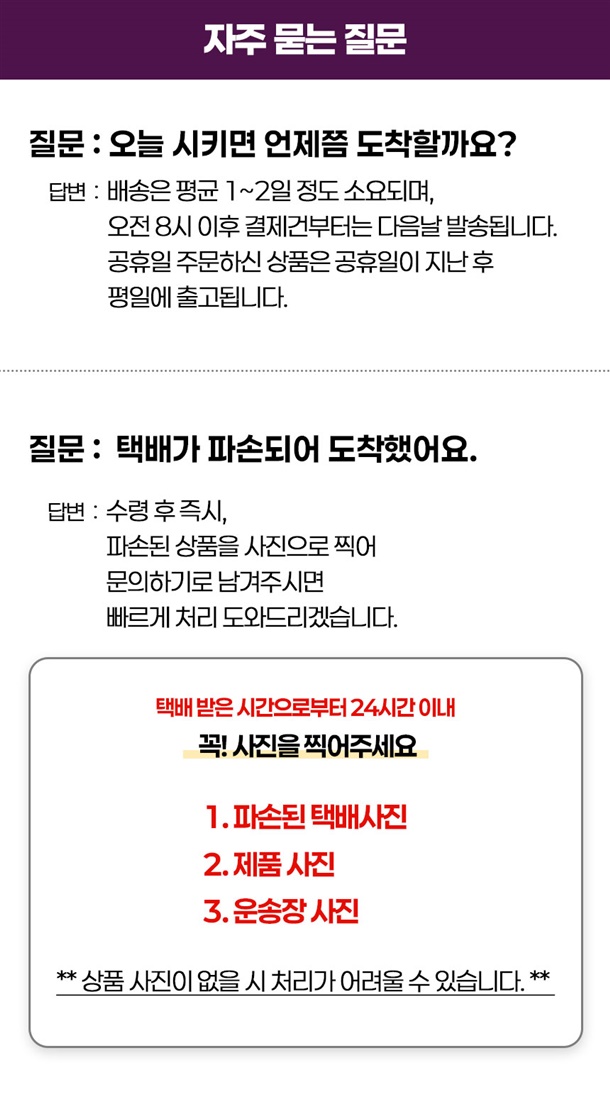 · 배송비 : 3,000원(1개 마다 기본배송비 반복 부과)