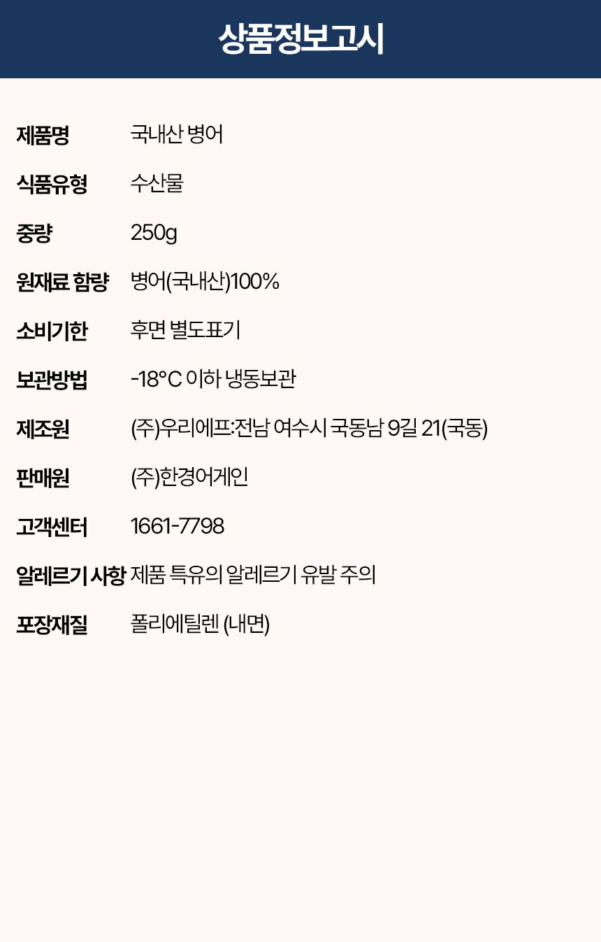 여수 바다의 신선함 그대로! 국내산 손질병어
